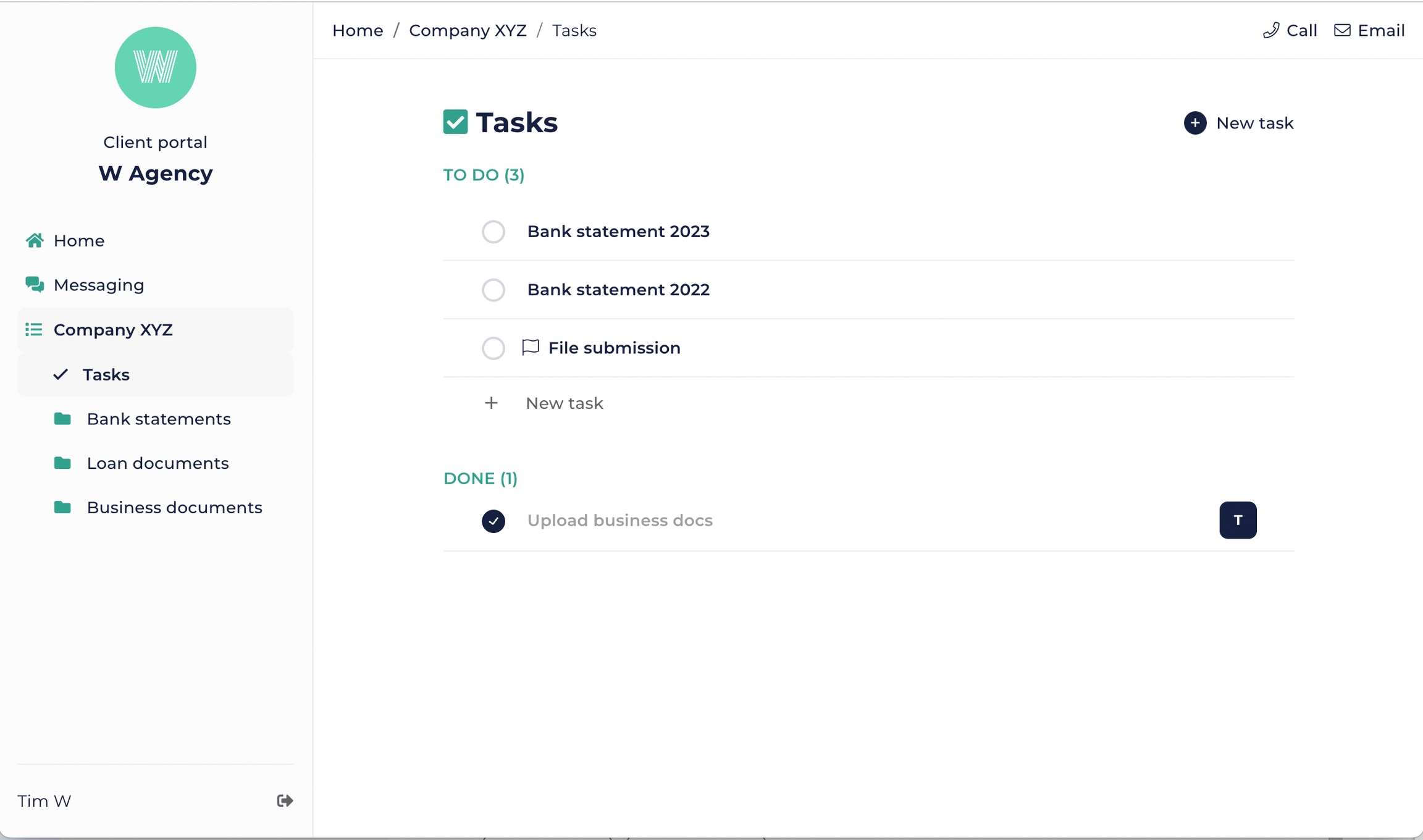 You can assign tasks to clients and clients can create tasks or mark them as completed.